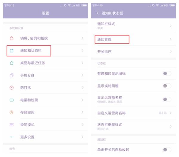 你还可以在通知栏管理设置菜单中,选择经常推送广告信息的应用,再点击关闭通知权限即可。具体操作步骤如下所示: