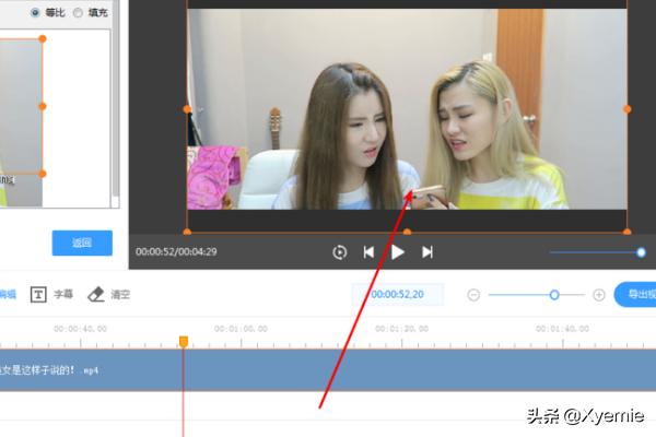 3、然后点击画面裁剪,然后在左边的小窗口下,拖动底部的中间的橘色原点往上拖去,直到不见了字幕。