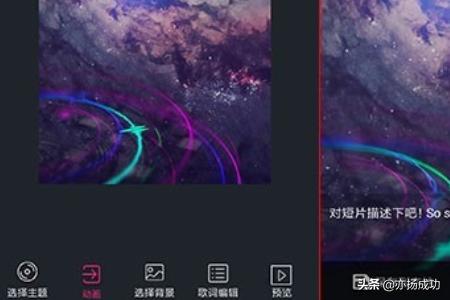页面底部,点击选择主题,软件内有各种风格的模板,选择一个适合音乐的特效进一步编辑。