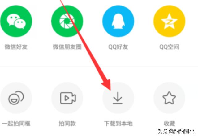 3、点击顶部的分享按钮打开分享界面,点击【下载到本地】即可将视频保存到手机。