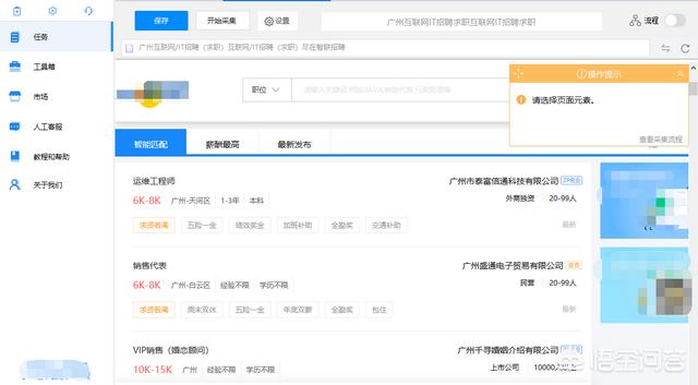 3.接着,我们直接点击页面元素,选择我们需要采集的元素,依次按照提示往下走,就能完成数据的采集准备,如下: