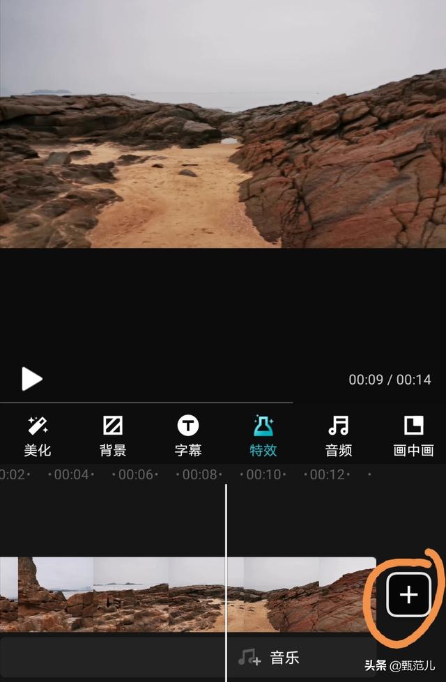 打开软件导入视频后,点击图中加号的按键,增加5秒补录的视频。尽量和你原视频搭配,主题统一的。或者根据你的视频主题添加片头片尾。对短视频来说5秒不长不短。会出现添加片头片尾时间仍然不够的情况。所以尽量添加自己的补录视频或者照片、图片等素材。如果不是太正规严肃主题的视频,也可以尝试加入慢镜头效果和转场效果达到延长时间的目的。